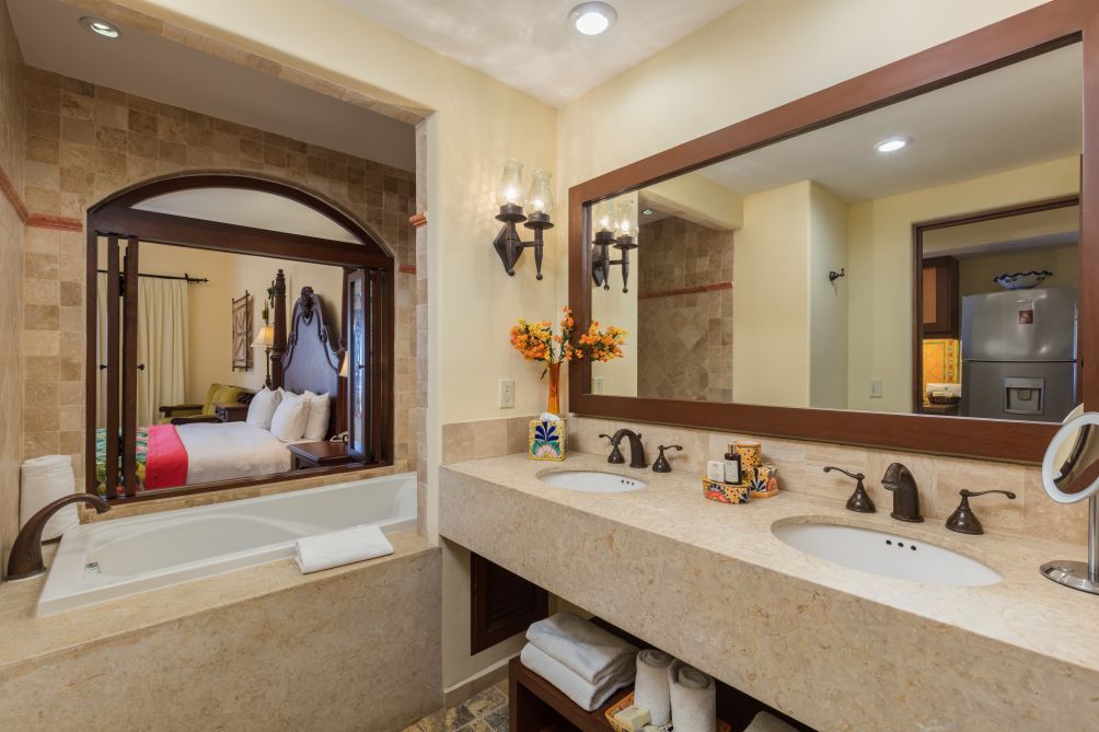 Discover paradise high above the sea in a picturesque destination that gives you seclusion, but is still close to the best of the Baja. Ignite your imagination with spectacular views of Land's End. Hacienda Encantada brings you the finest Los Cabos luxury experience offering an optional Inclusive stay, pairing exquisite suites and private villas with superior service, traditional Mexican architecture, and breathtaking landscapes. Reconnect body, mind, and soul in our wellness spa and temazcal. Relax your senses with spectacular sea views while lounging by the pool or at the swim-up bar. Indulge in the flavors of the Baja at our restaurants and bars, then explore the Marina Golden Zone with our Dine Out Privileges Plan. A stay at Hacienda Encantada gives you a whole new perspective on Los Cabos luxury... it will change you forever. These luxury suites offer you a king bed, a spacious bathroom, a whirlpool, a sitting area, and a kitchenette to cook your meals. Relax on your private balcony with sweeping views of the surroundings of the beautiful Hacienda.