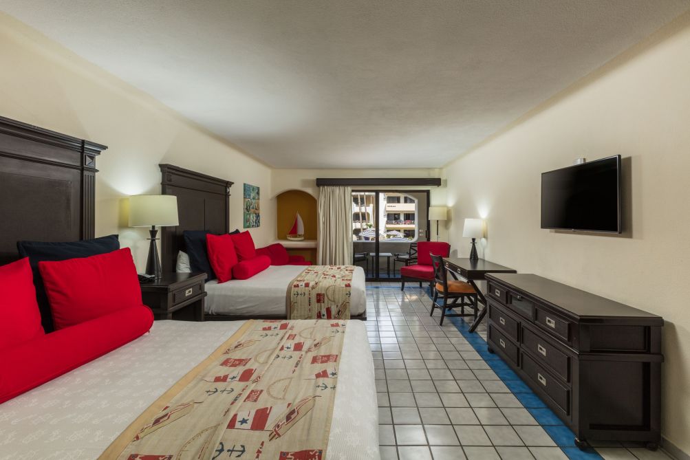 Inspired by stunning marina vistas and the vibrant spirit of Mexico, our inviting and luxurious suites are filled with charming nautical touches and an ambiance of casual coastal chic. Take advantage of modern comforts like plush bedding and fully-equipped kitchens or kitchenettes, all enhanced by breezy decor and bright colors that reflect the vibrant energy of Baja. Enjoy sweeping views of the marina, resort pool, or scenes of Cabo San Lucas city life from your private balcony before retreating to luxe accommodations, with available connecting suites for larger groups and families. Your all-inclusive Cabo escape is waiting.